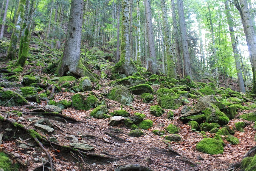 Старт о 9.30. Практика вечері-сніданку економить час! Ранок був сонячний. Почали конкретно набирати висоту. Потім вийшли до галявини з колибою. Після чого звернули з червоної маркованої дороги і пішли напряму до полонини Лисичої. По маршруту знову перетнули Білий, потрапили в затишне урочище.