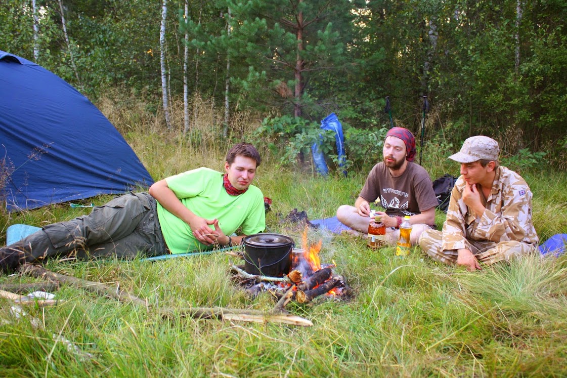 Нове місце стоянки було мажорне-відкривався чудовий вид на озеро і повна відсутність комарів. Комфорт понад усе. Єдиний напряг-це дрова. Сухостою в околицях мало. Зацінив мегашикарну баню. Поржав (мужики не запарювались і просто розігрівали на багатті вогнестійку цеглу, а потім несли її під тент з тонкої, харчової плівки). Наскільки ця баня була заїбісь знали тільки мужики і маршал Будьонний, який гнав небом свою конніцу кудись на Захід.