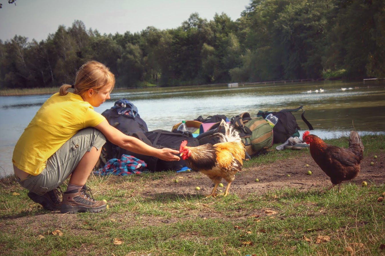 Повернулиса назад до озера, набрали колодязьної води в порожню тару, Саня скупнувся, Дашидзе погодувала свійських птахів, ще раз перепакувались і рушили в дорогу.