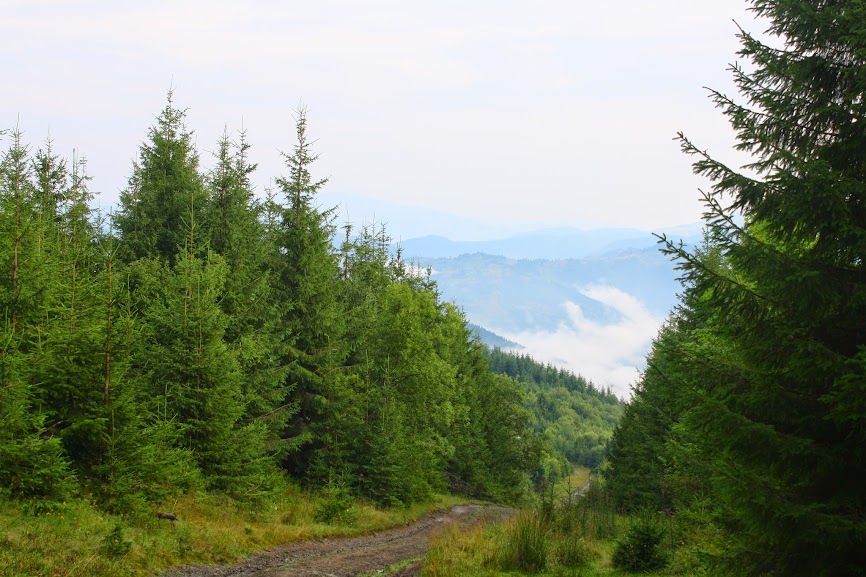 Знизу була роздовбана автомобільна прикордонна дорога, обабіч якої штучно насадили ялинки, які ховали за собою краєвид. Відчуття того, що ти в горах якось втрачалося. А ще ця дорога запам*яталася здоровенними купами коров*ячого лайна. Інколи мені навіть ставало страшно від приблизного підрахунку розмірів істоти, яка могла тут накласти такі гори в таких обсягаг.